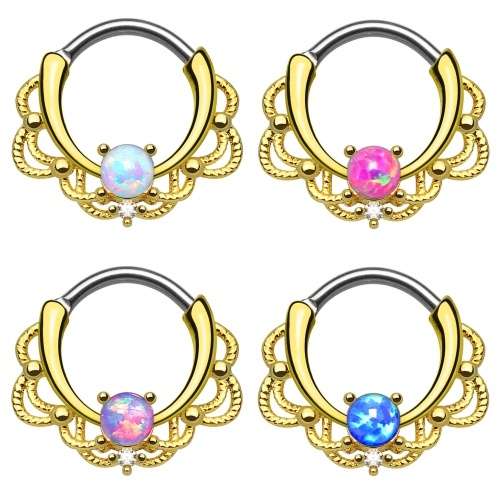 Nasenpiercing Ring Septum Clicker Tribal vergoldet mit Opal