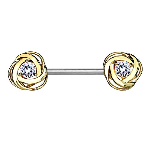 Nippelpiercing Barbell Brustwarzenpiercing mit Rosenblüten und Kristall