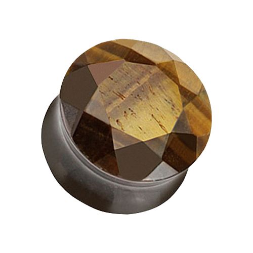 Ohr Plug aus Stein geschliffene Prismen Braun