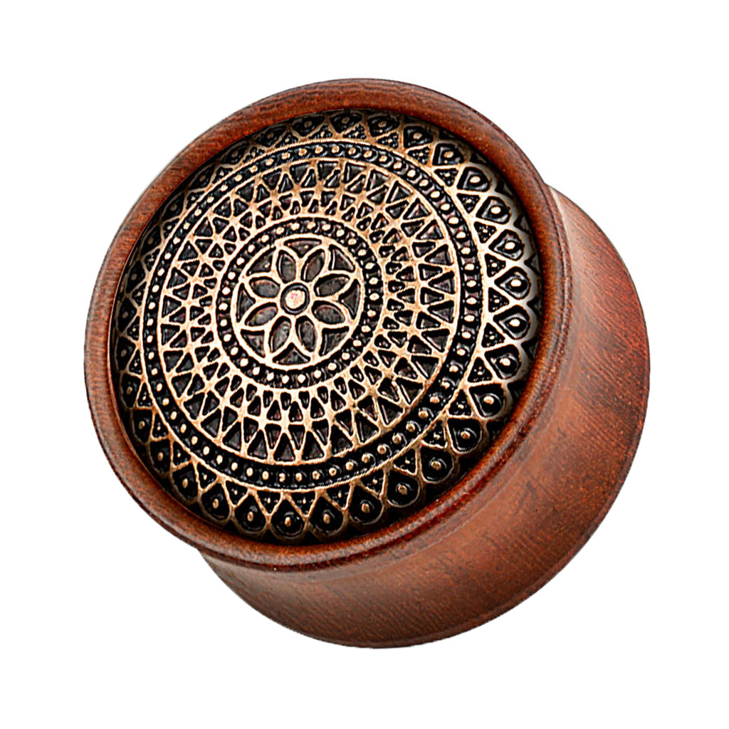 Ohr Sattel Plug Rosenholz Braun Gitter Muster Blume