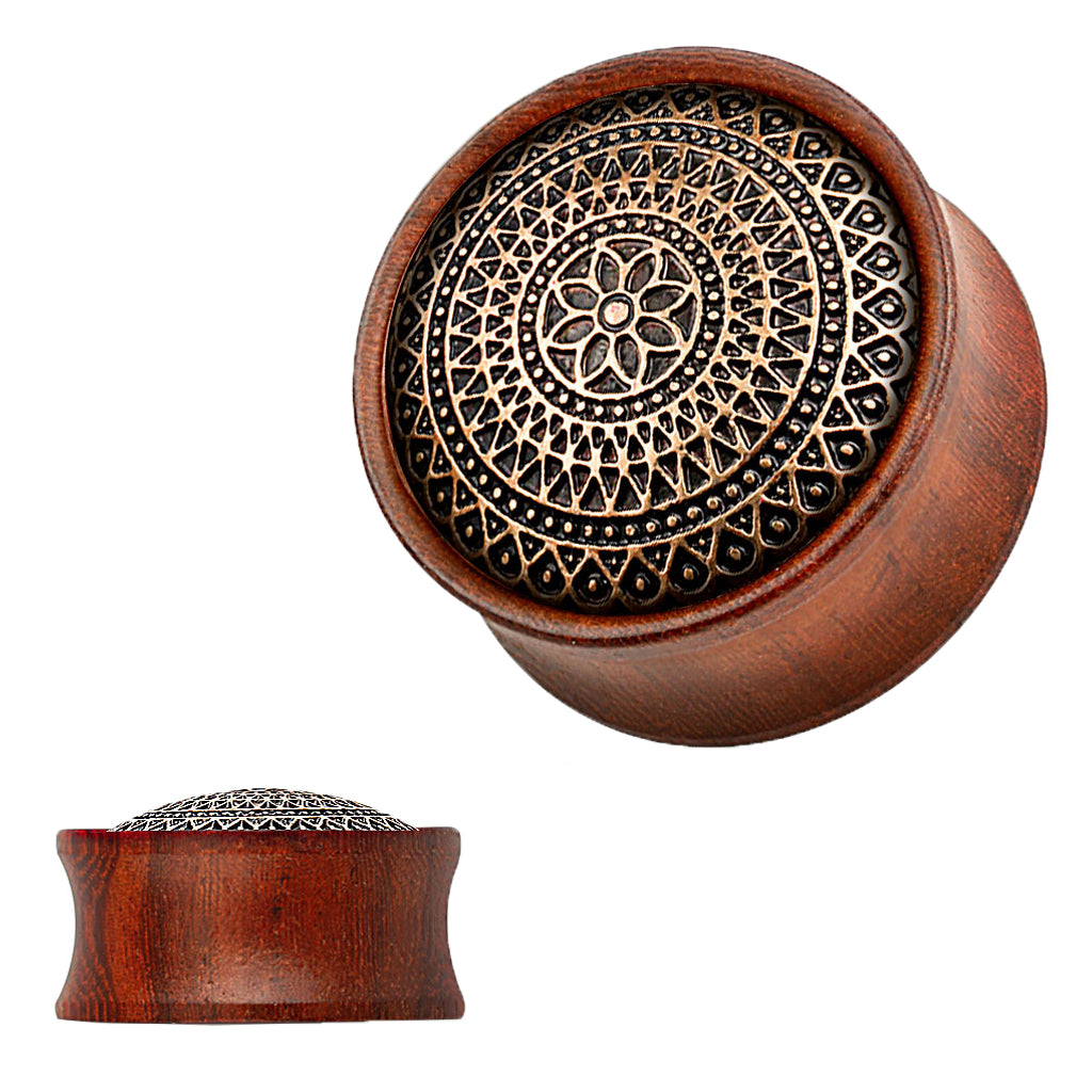 Ohr Sattel Plug Rosenholz Braun Gitter Muster Blume