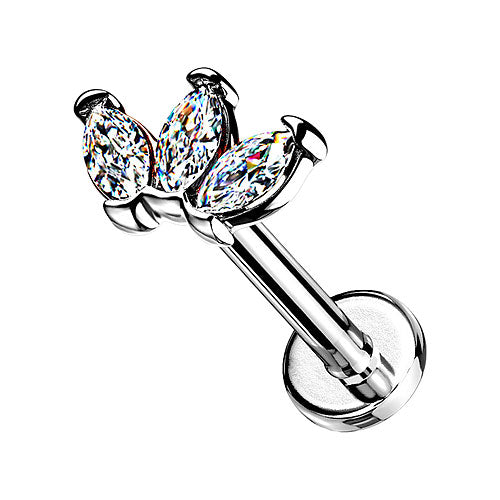 Ohr Tragus Helix Labret Piercing Stecker flach Kristall Marquise Innengewinde