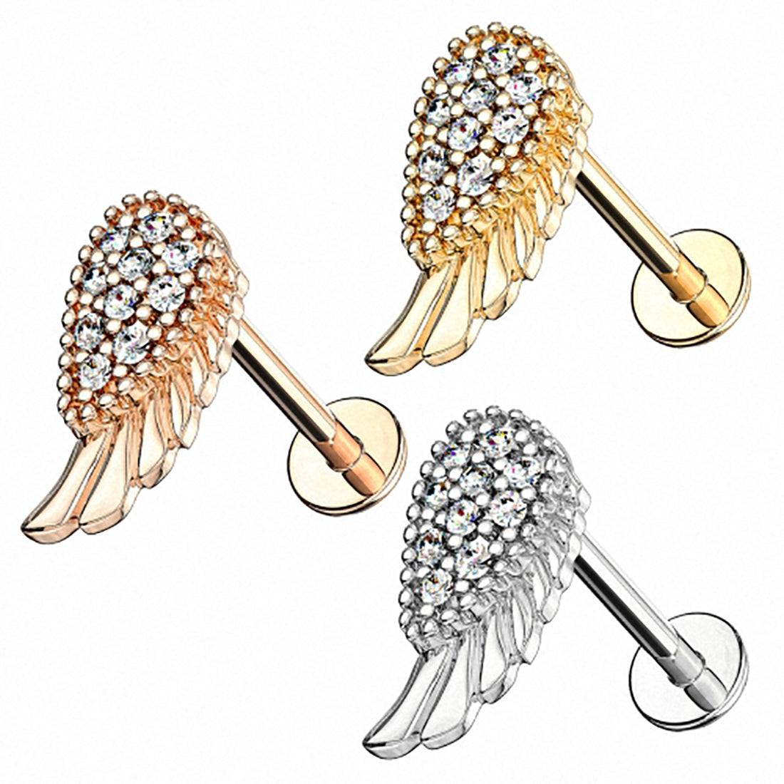 Ohr Tragus Knorpel Labret Piercing Stecker Kristall Engelsflügel