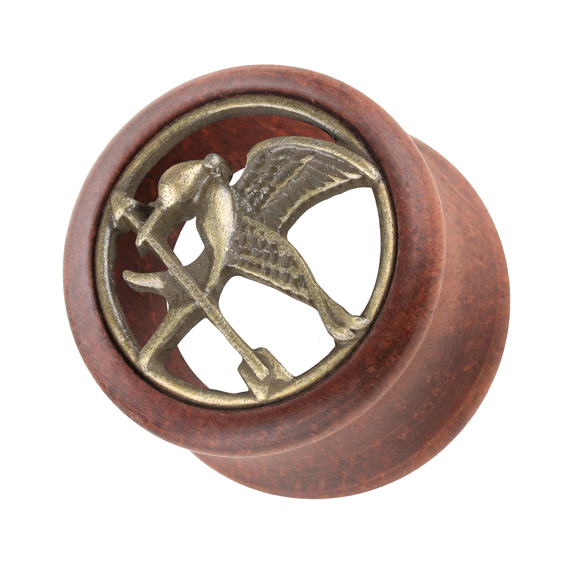 Ohr Tunnel Double Flared aus Holz mit Tribute von Panem Vogel Inlay
