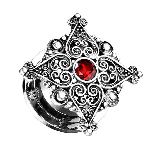 Ohr Tunnel Motiv Plug Edelstahl Tribal Herzen filigran roter Kristall