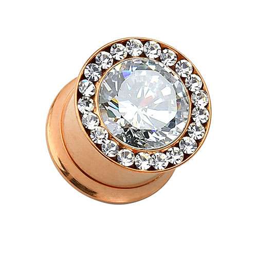 Ohr Tunnel Piercing Plug Rosegold vergoldet Multi Kristalle