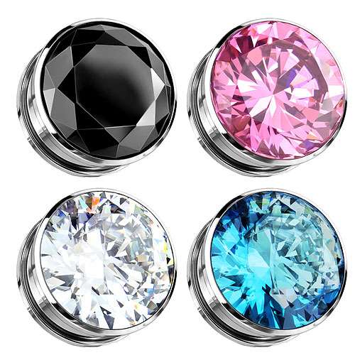 Ohr Tunnel Plug Piercing mit großen eingefassten runden Kristall
