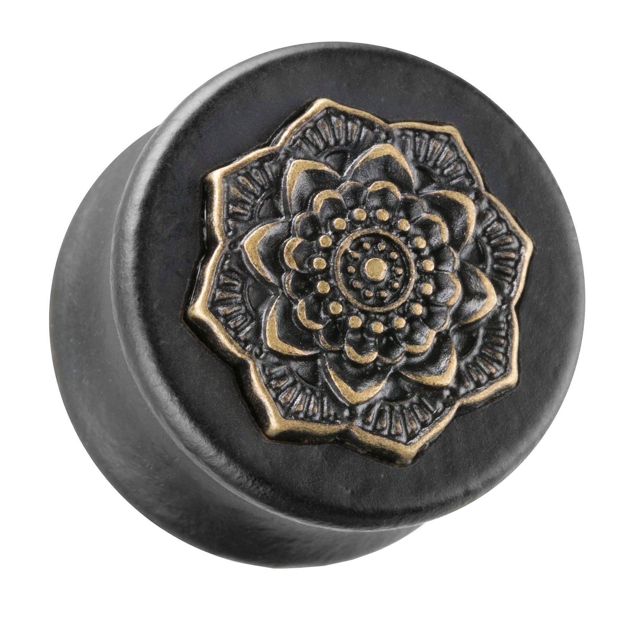 Organischer Holz Ohr Plug schwarz Mandala Sonne Ethno Tribal