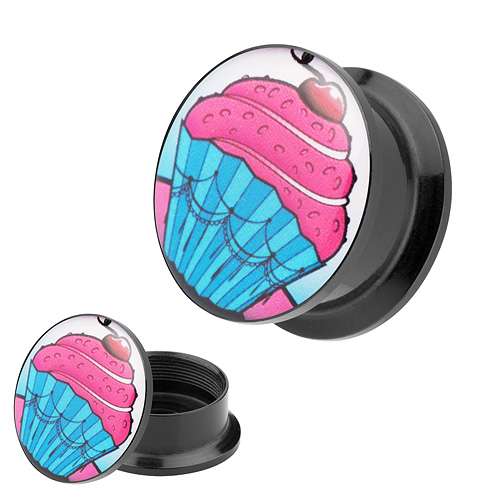 Picture Ohr Tunnel Gewinde Plug Motiv Cupcake Muffin mit Kirsche