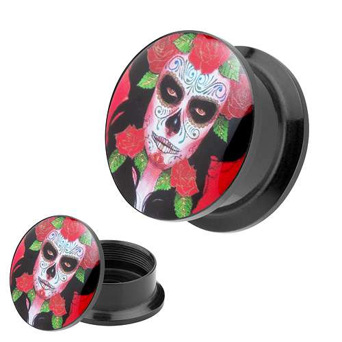 Picture Ohr Tunnel Gewinde Plug Motiv Día de los Muertos Totenkopf