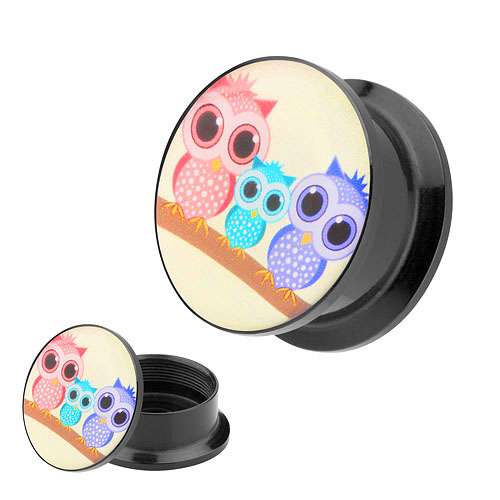 Picture Ohr Tunnel Gewinde Plug Motiv Eulen Familie