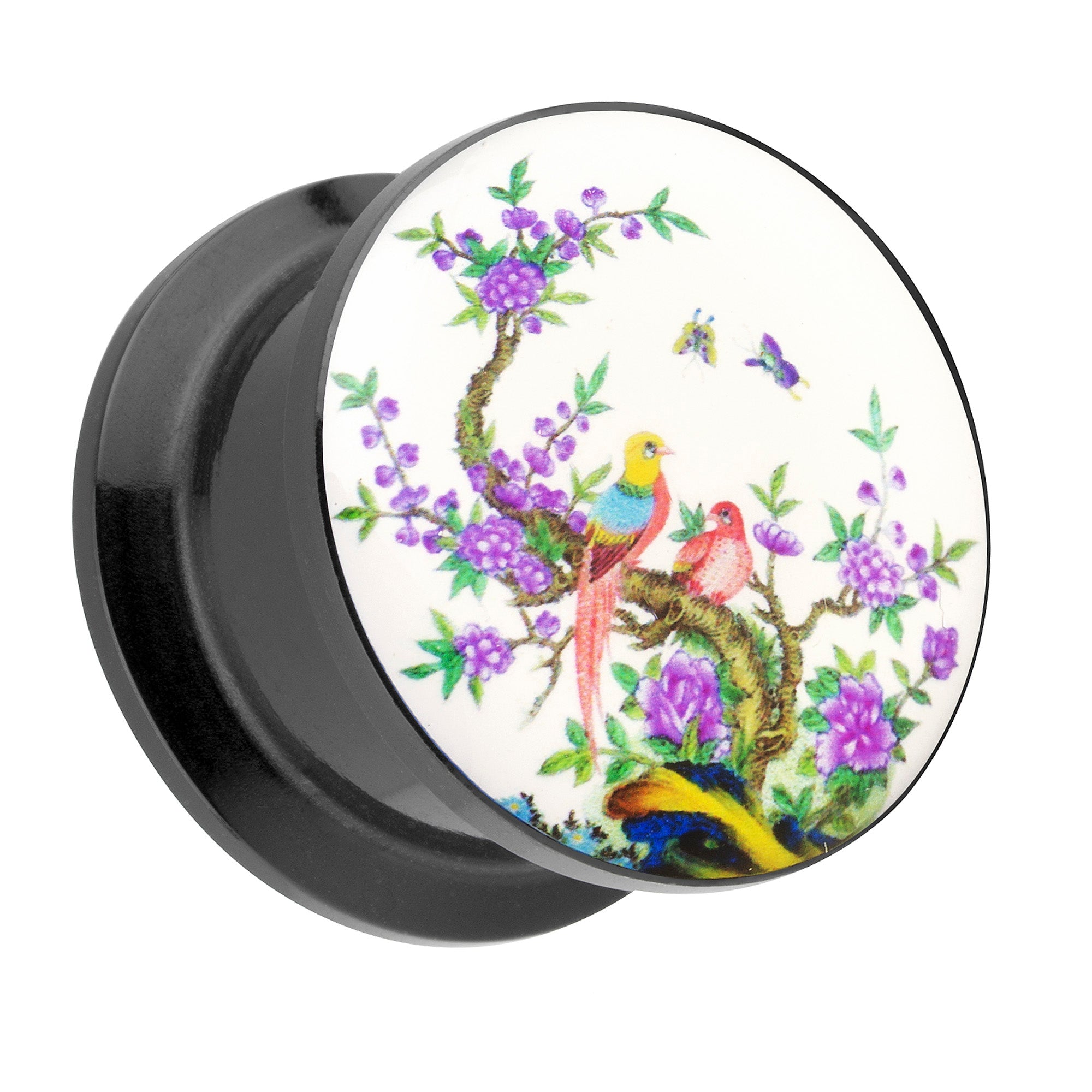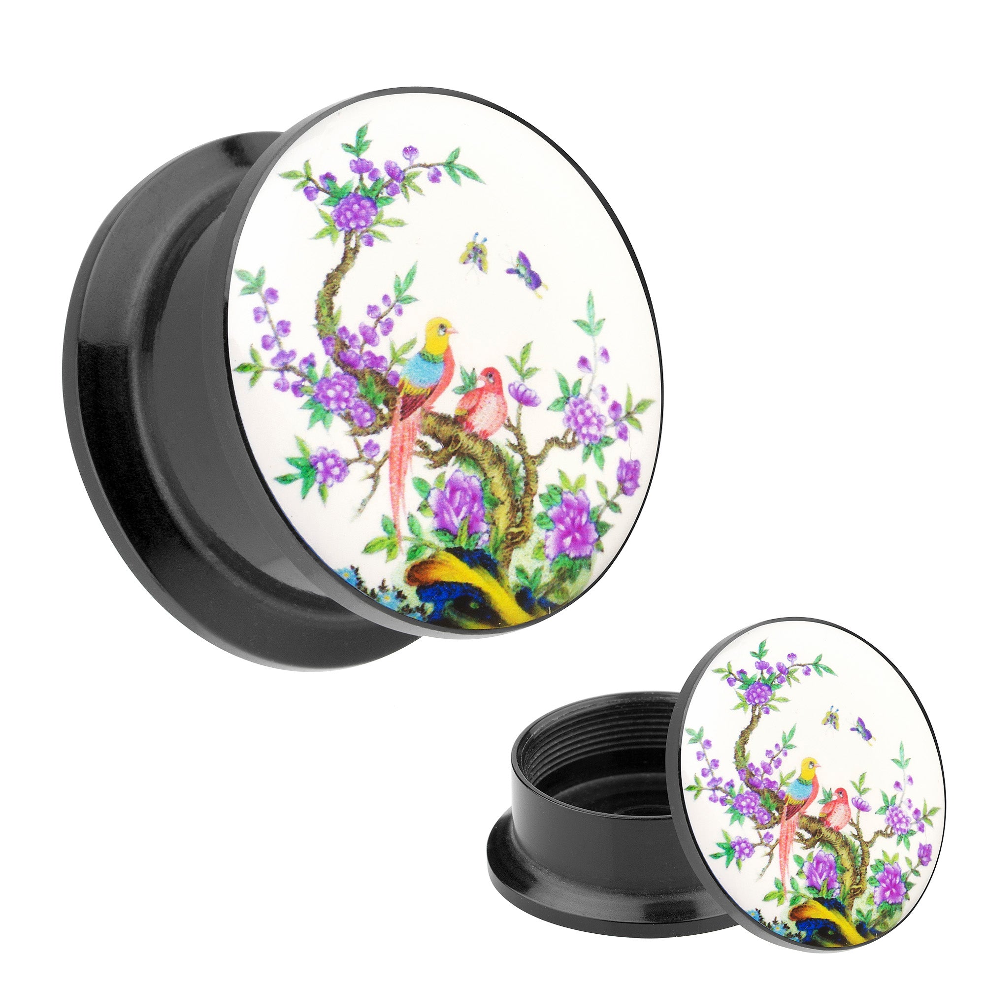 Picture Ohr Tunnel Gewinde Plug Motiv Frühling mit Vögel & Schmetterlingen
