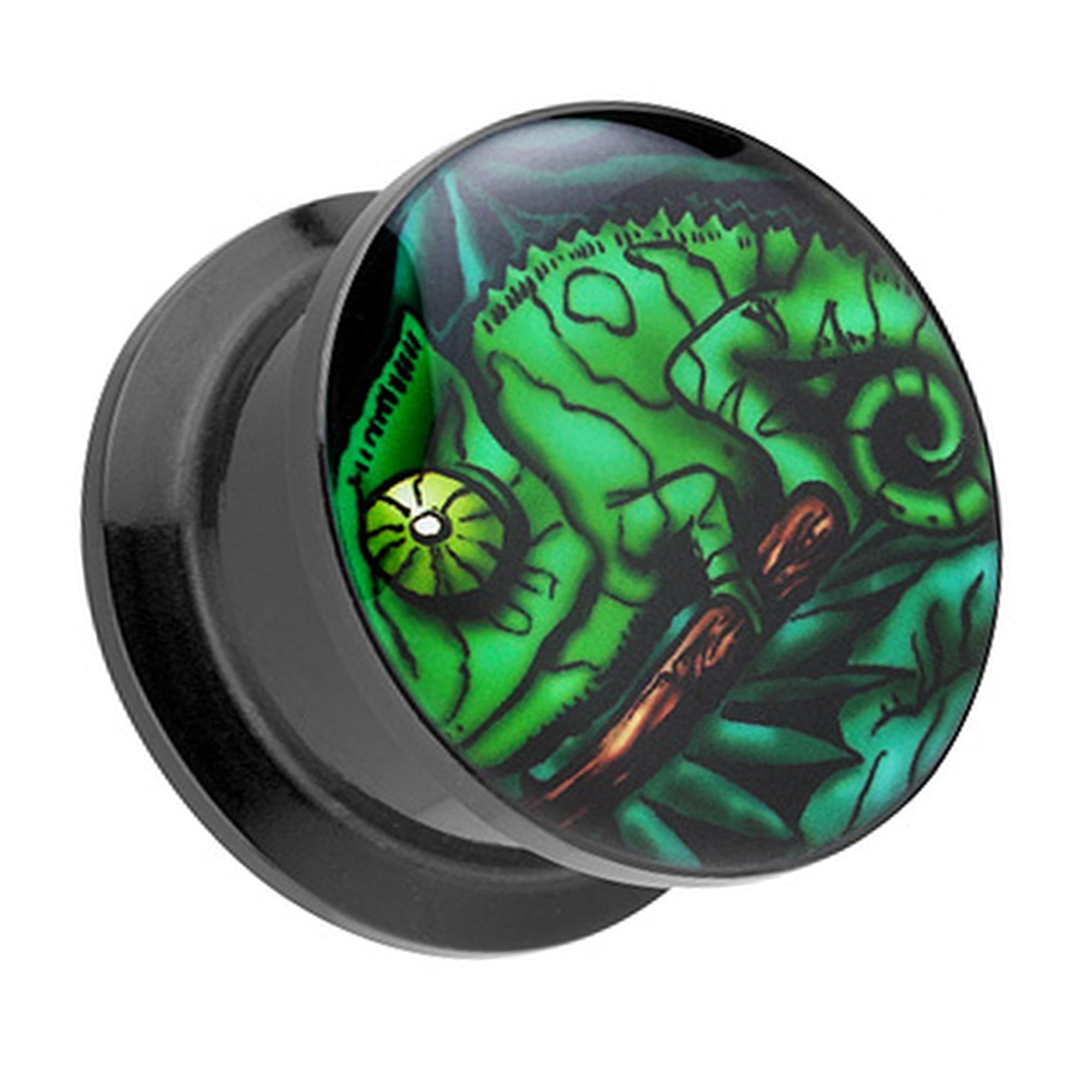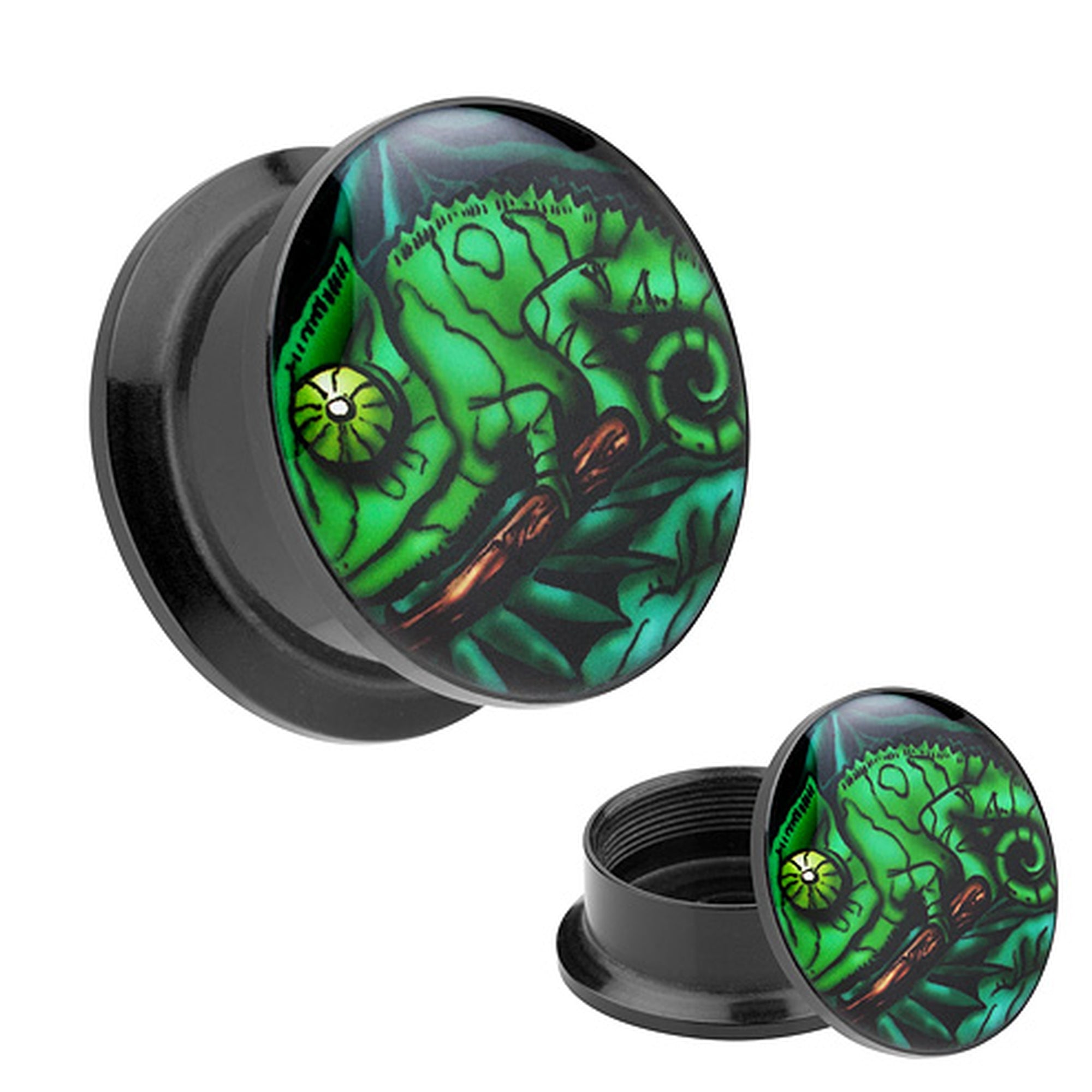 Picture Ohr Tunnel Gewinde Plug Motiv grünes Chamäleon