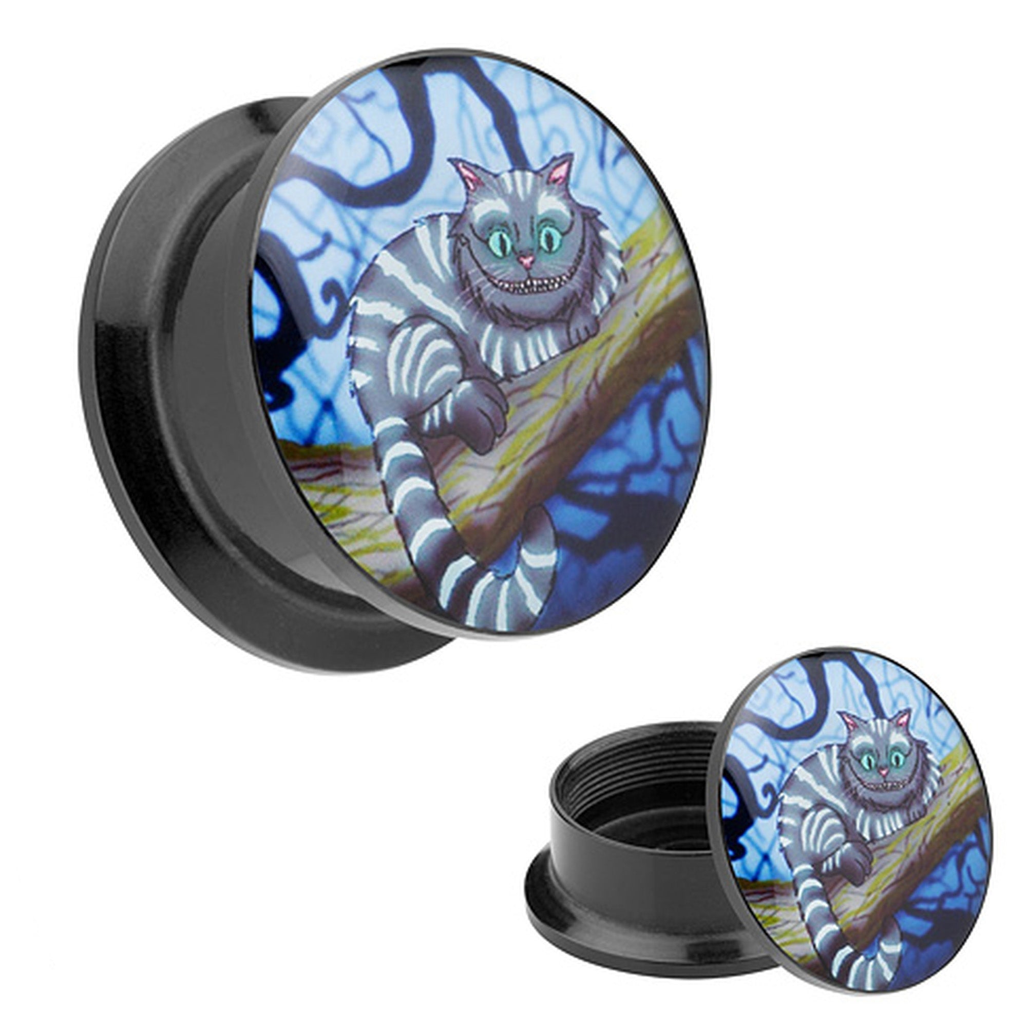 Picture Ohr Tunnel Gewinde Plug Motiv liegende Grinsekatze