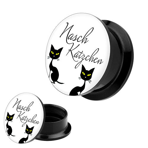 Picture Ohr Tunnel Gewinde Plug Motiv Naschkätzchen Schwarz