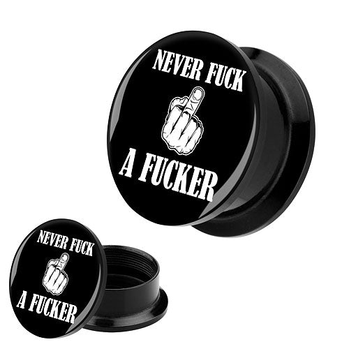 Picture Ohr Tunnel Gewinde Plug Motiv NEVER FUCK A FUCKER Schwarz