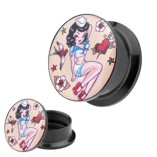 Picture Ohr Tunnel Gewinde Plug Motiv Rockabilly Matrosen Mädchen