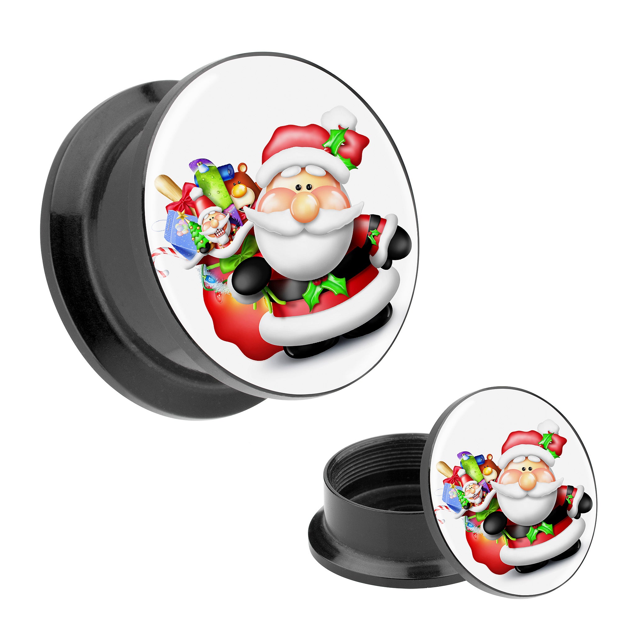Picture Ohr Tunnel Gewinde Plug Motiv Weihnachtsmann mit Geschenken