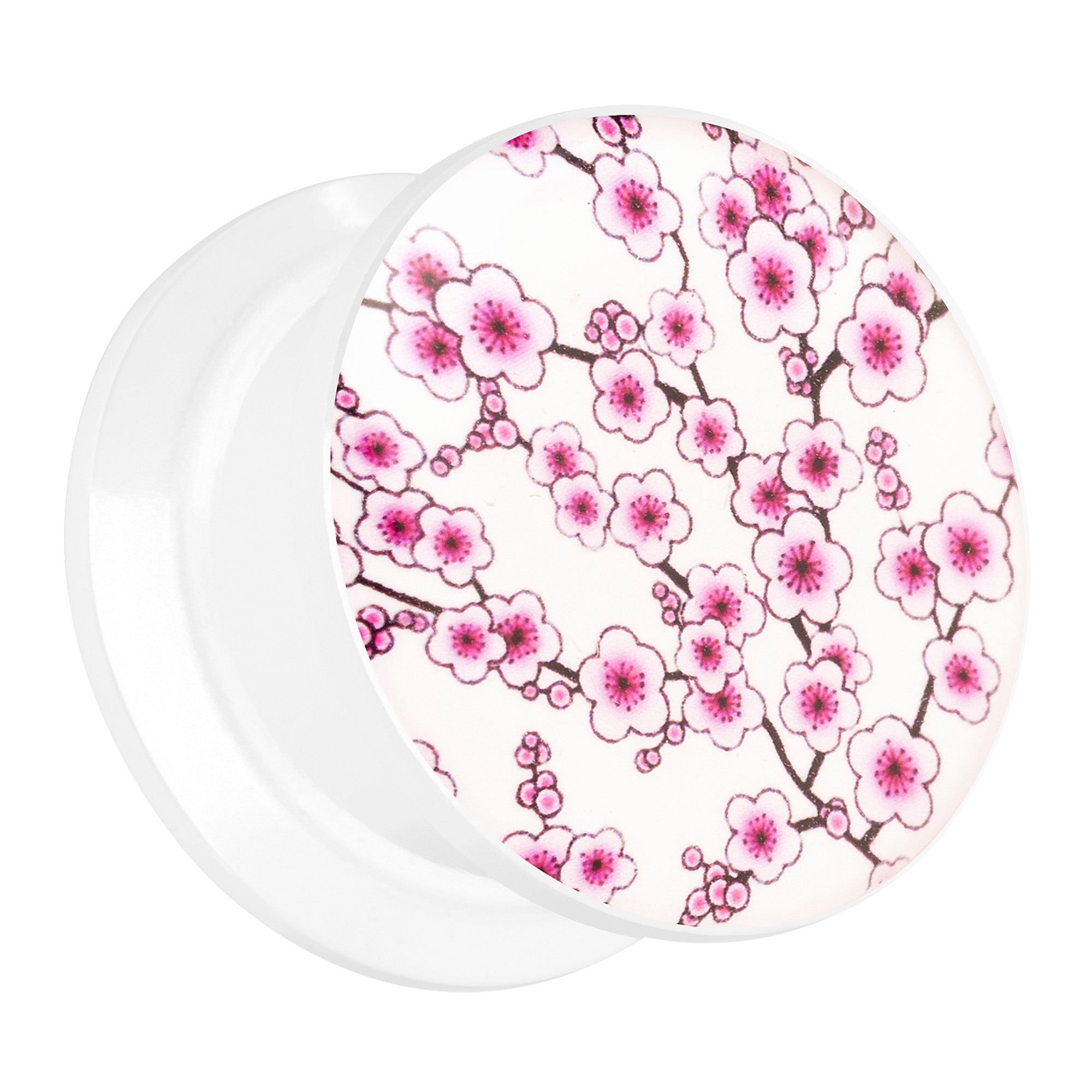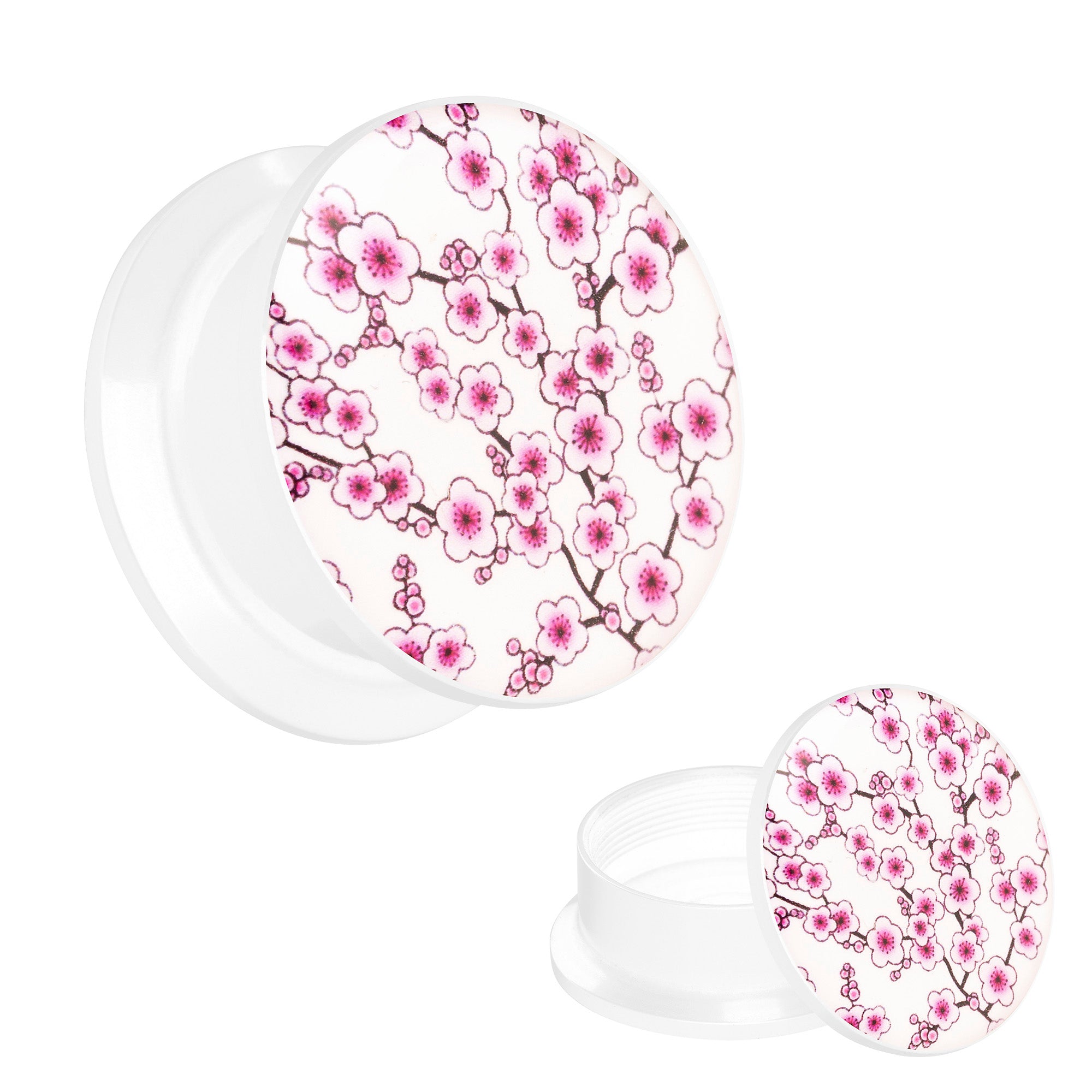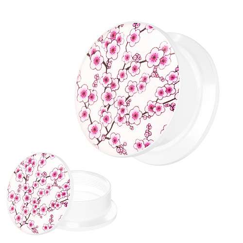 Picture Ohr Tunnel Gewinde Plug Weiß Motiv mit Kirchblüten