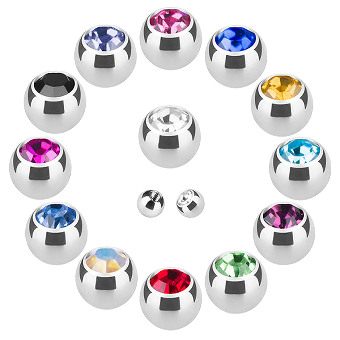 Piercing Ersatz Schraubkugel Edelstahl Silber mit Kristall
