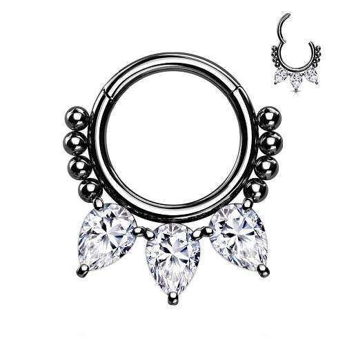 Premium Septum Piercing Clicker Ohr Helix Nase Segmentring 3 Kristalltropfen