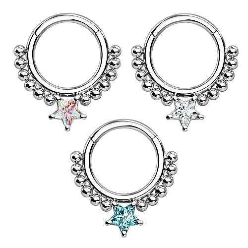 Premium Septum Piercing Clicker Ohr Helix Nase Segmentring Kristall Stern