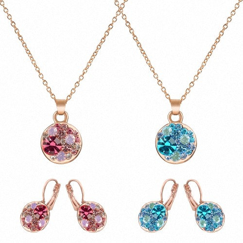 Schmuckset Halskette Ohrringe Rosegold vergoldet bunte Zirkonia Kristalle