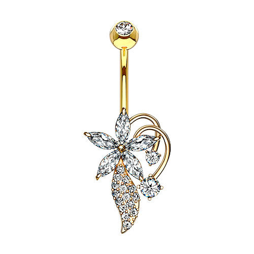 Schönes Bauchnabelpiercing Banane filigraner Kristall Blumen Blüten