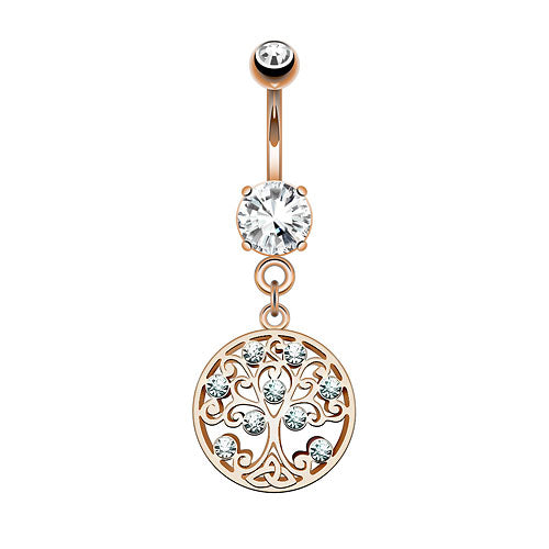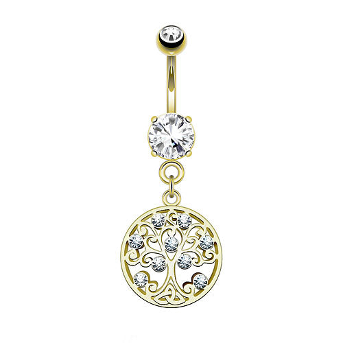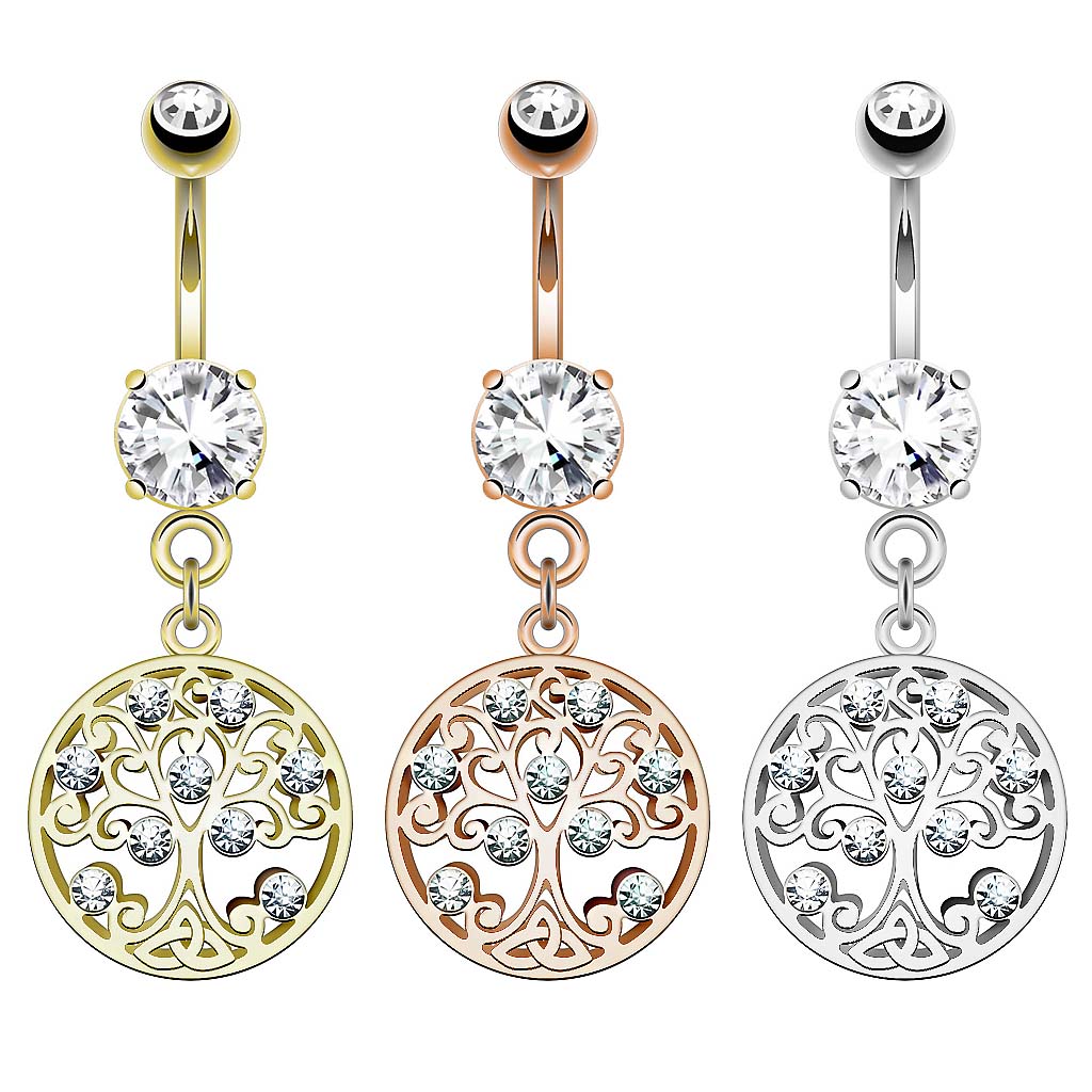 Schönes Bauchnabelpiercing Baum des Lebens mit Kristallen