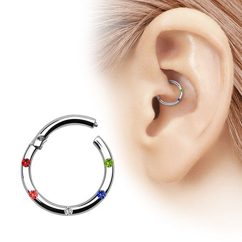 Septum Piercing Clicker Segment Nase Ohr mit kleinen Kritsallen besetzt