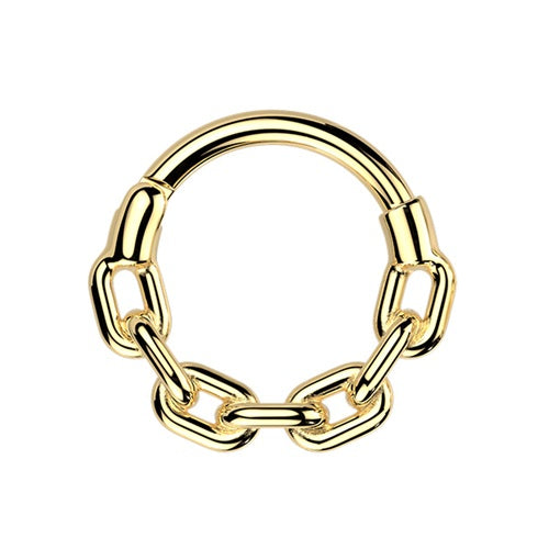 Das besondere Ketten-Design macht dieses Piercing zu einem echten Eyecatcher, der deinem Outfit eine trendige, edgy Note verleiht. Ob als Septum-Ring, Helix-Piercing, Daith oder Tragus – dieser vielseitige Clicker ist für viele verschiedene Piercingarten geeignet und damit ein echter Allrounder.