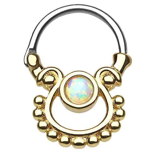 Septum Piercing Doppel Tribal Ring Clicker mit Opal