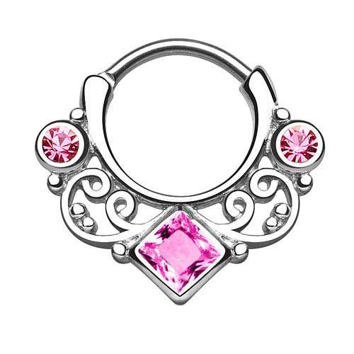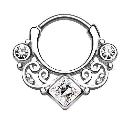 Septum Piercing Klicker Tribal silbern mit CZ Kristallen