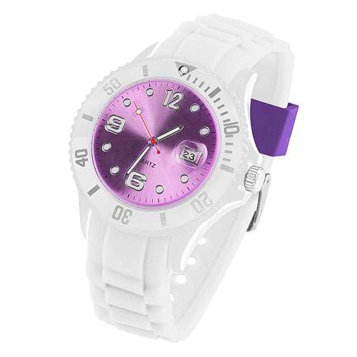 Silikon Armbanduhr Weiß Farbiges Ziffernblatt mit Datum