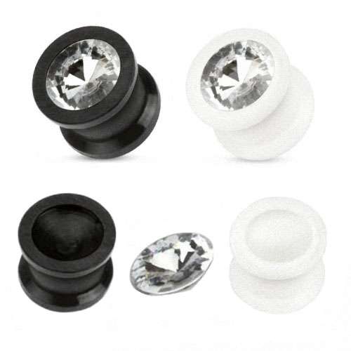 Silikon Flesh Ohr Plug Double Flared mit Kristall