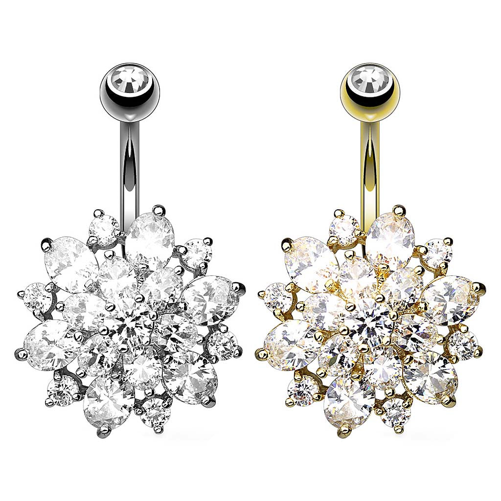 Stylisches Bauchnabelpiercing Dahlia Blume mit vielen Kristallen