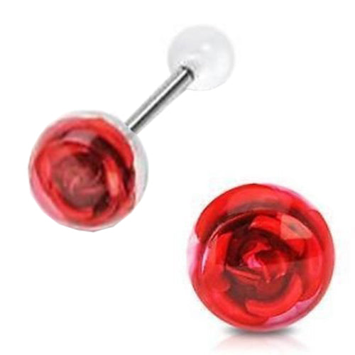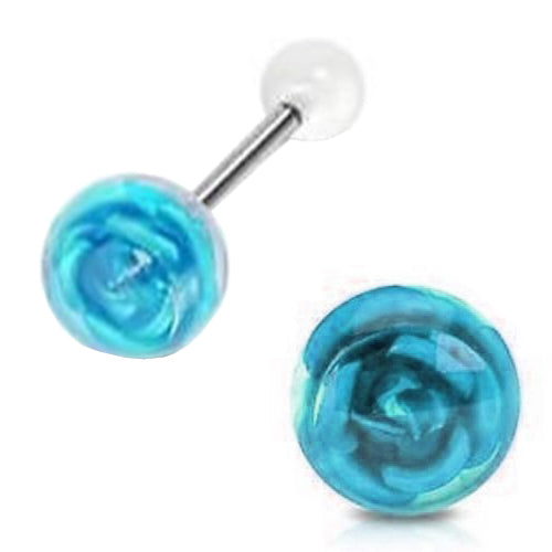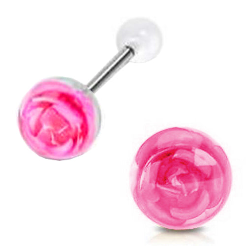 Stylisches Zungenpiercing Barbell Kugel mit Rosen Blüte Inlay