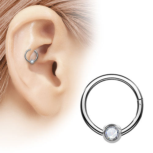 Titan Septum Nase Ohr Segment Ring Piercing Clicker Scharnier mit Kristallkugel