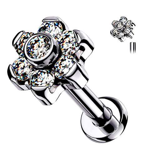 Titan Tragus Labret Knorpel Lippen Ohr Piercing Stecker Innengewinde Kristalle