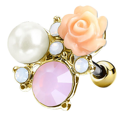 Tragus Cartilage Knorpel Piercing Ohr Stecker Blume Opal Perle