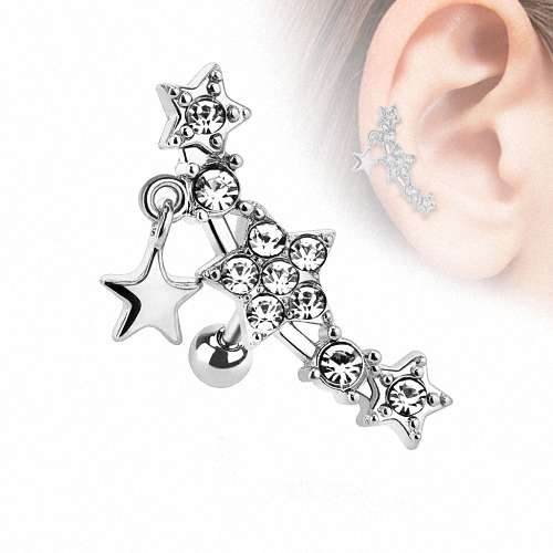 Tragus Cartilage Ohr Piercing Knorpel Stecker mit Kristall Sternen