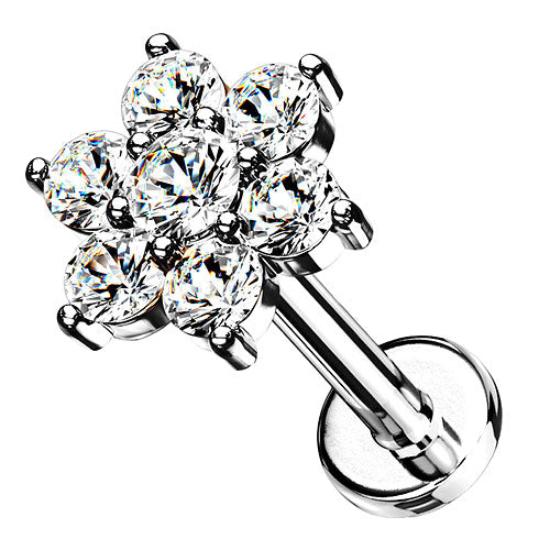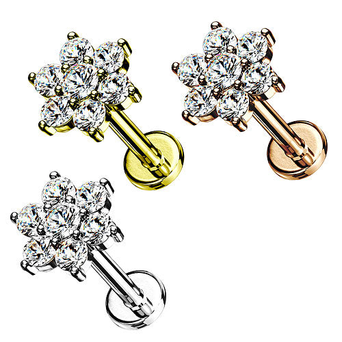 Tragus Helix Labret Ohr Stecker Piercing flach Zirkonia Blume Innengewinde