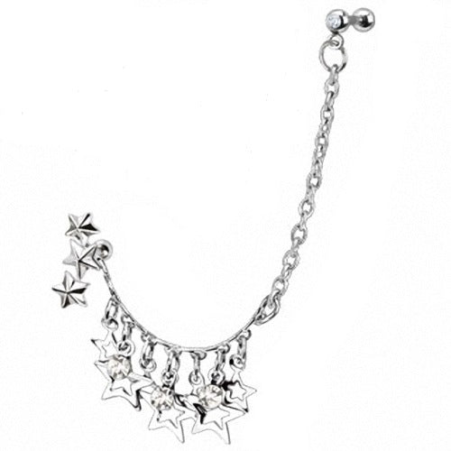 Tragus Helix Piercing Stecker Kette mit Kristallen und Sternen