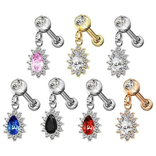 Tragus Ohr Knorpel Piercing mit Kristall Tropfen Anhänger