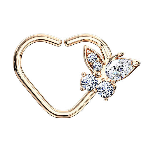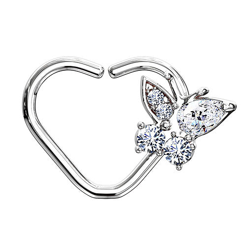 Tragus Ohr Piercing Continuous Herz Ring mit Kristall Schmetterling