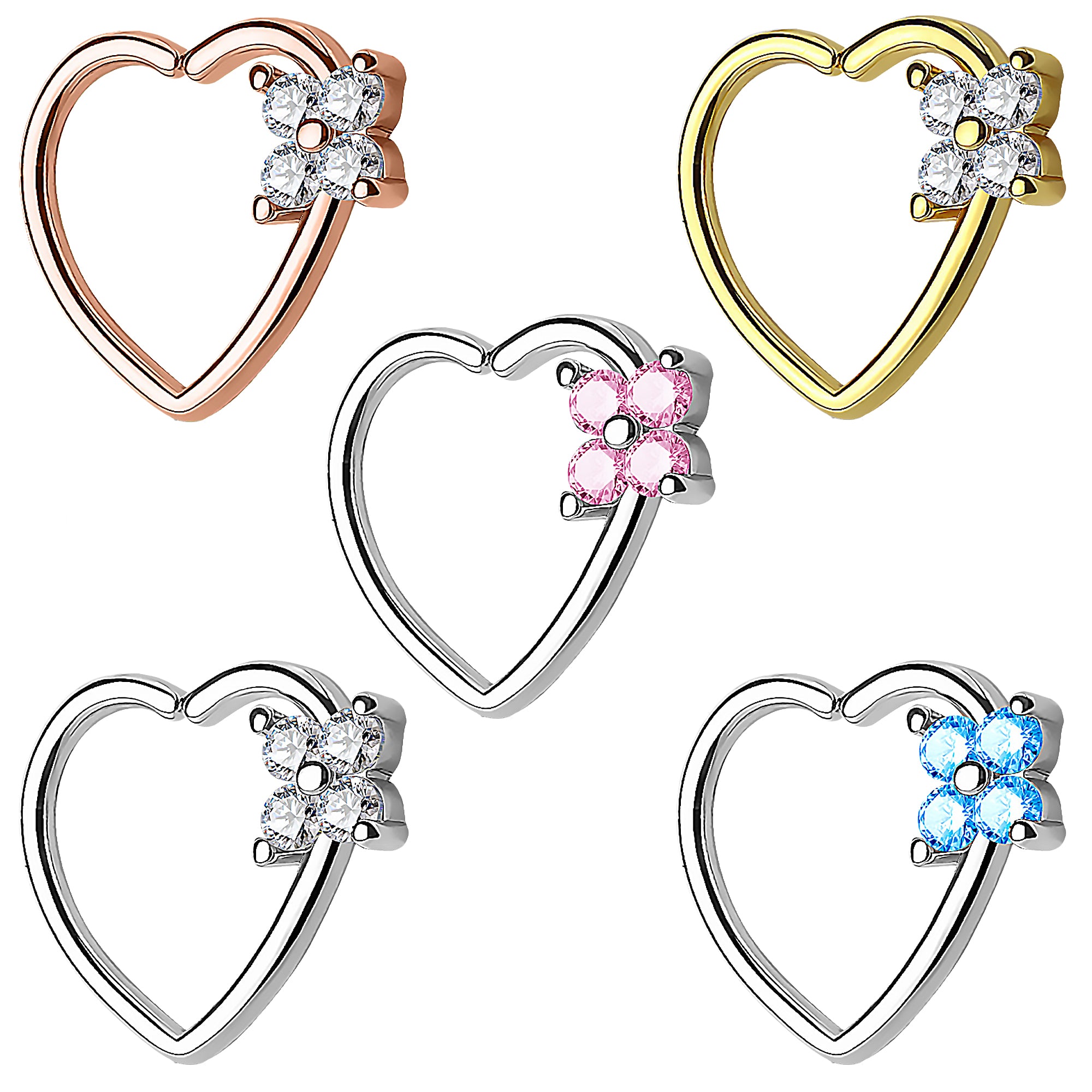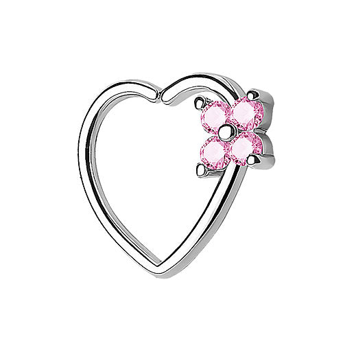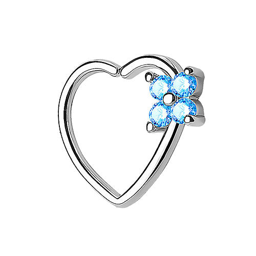 Tragus Ohr Piercing Continuous Ring Herz mit Kleeblatt Kristall