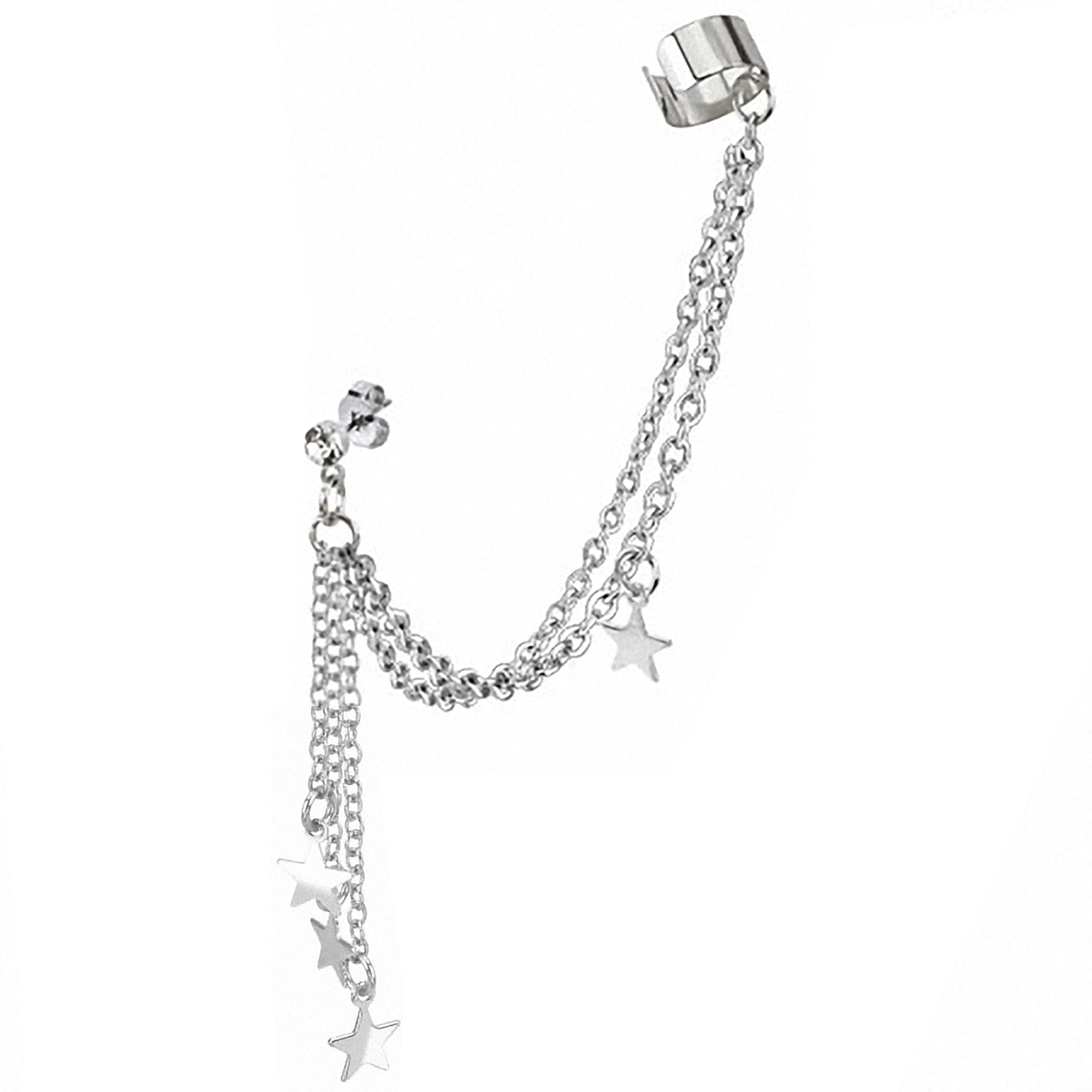 Tragus Piercing Clip Stecker Kristall Clear Kette Stern