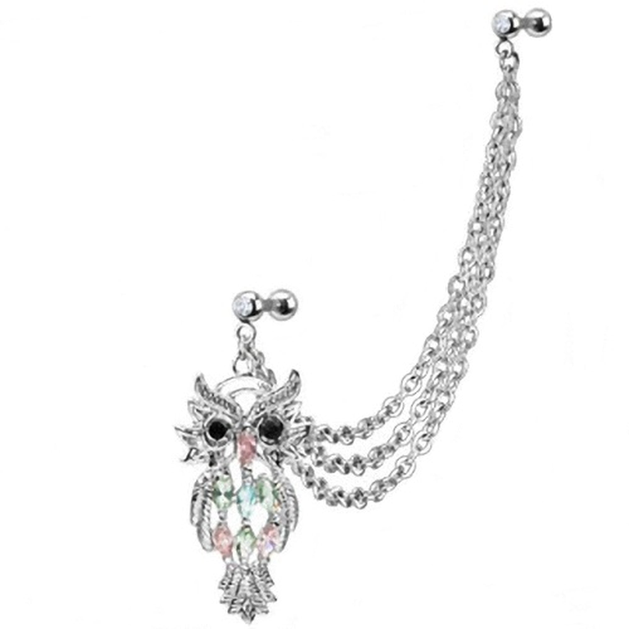 Tragus Ohr Piercing Stecker Kette Kristall Eule