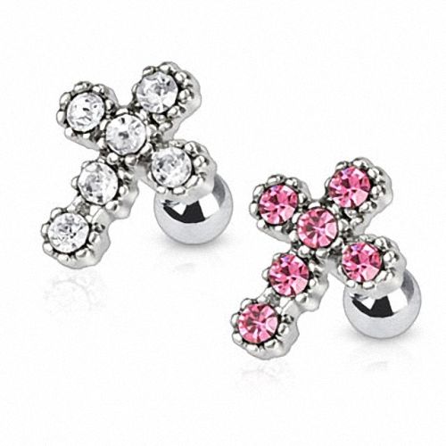 Tragus Piercing Stecker Multi Kristall Kreuz