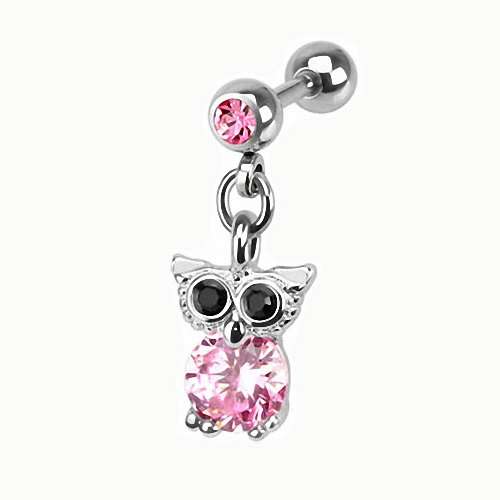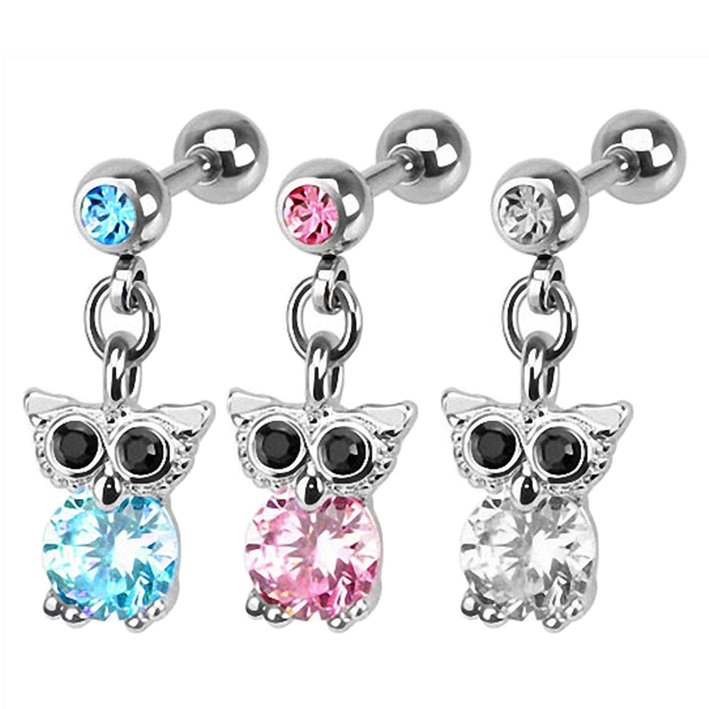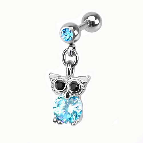 Tragus Schmuck Helix Piercing mit Kristall Eulen Anhänger